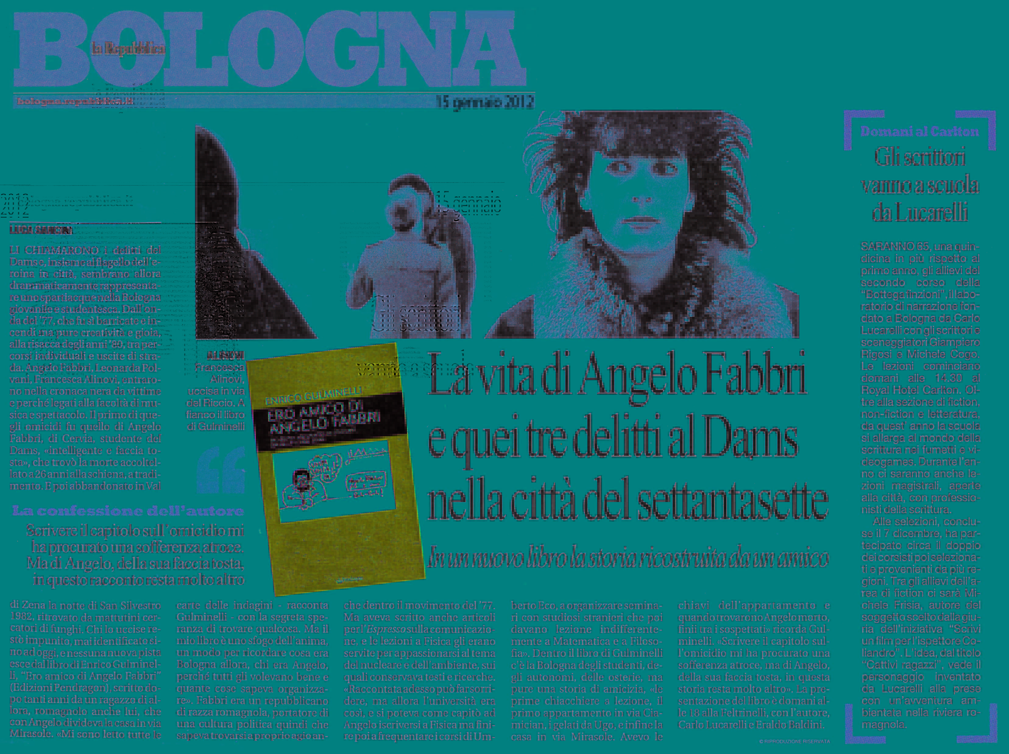 Ero amico di Angelo Fabbri 15 Gennaio 2012 Il Resto del Carlino - Bologna 15 gennaio 2012 Vai al libro