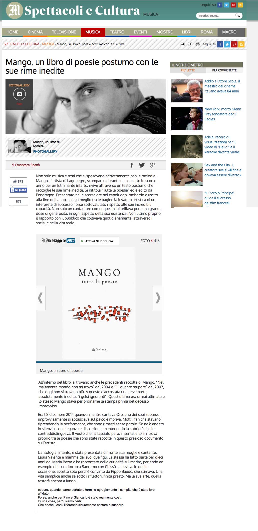 Rassegna stampa Tutte le poesie 19 Gennaio 2016 Vai al libro spettacoliecultura.ilmessaggero.it Facebook Twitter Indietro Avanti