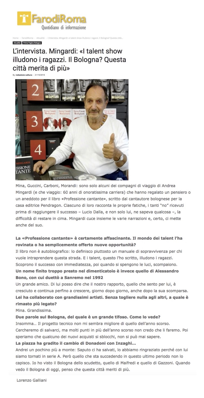 Rassegna stampa Professione cantante 21 Ottobre 2018 Vai al libro www.farodiroma.it Facebook Twitter Indietro Avanti