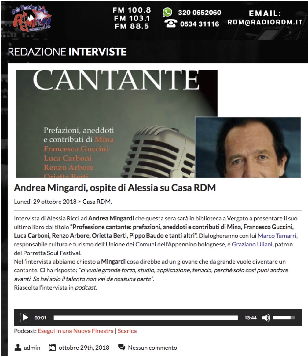 Rassegna stampa Professione cantante 29 Ottobre 2018 Vai al libro Radio RDM Facebook Twitter Indietro Avanti