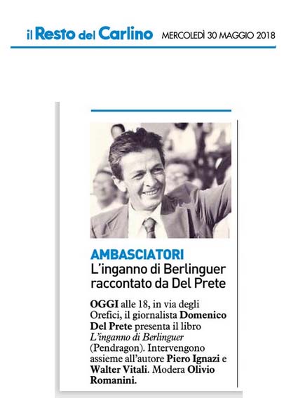Rassegna stampa L'inganno di Berlinguer 30 Maggio 2018 Vai al libro Il Resto del Carlino - Bologna Facebook Twitter Indietro Avanti