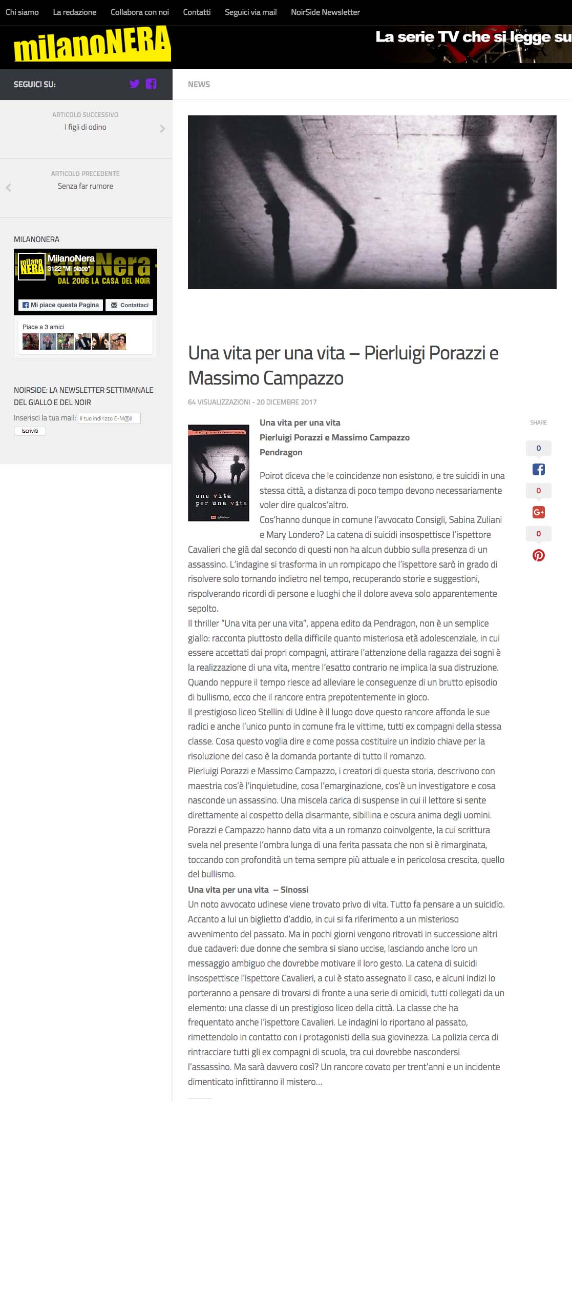 Rassegna stampa Una vita per una vita 20 Dicembre 2017 Vai al libro http://www.milanonera.com Facebook Twitter Indietro Avanti