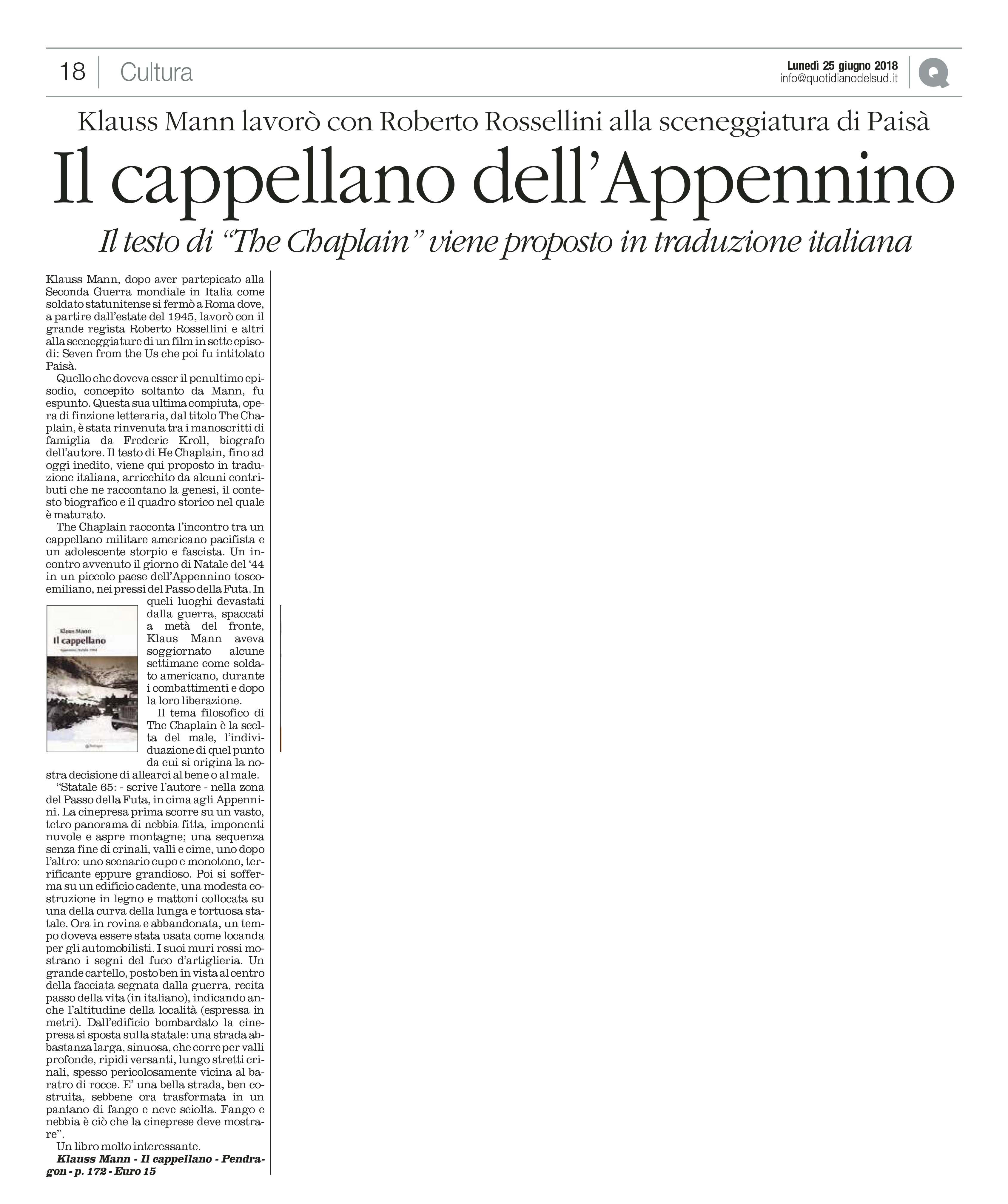 Rassegna stampa Il cappellano 25 Giugno 2018 Vai al libro Il Quotidiano del Sud Facebook Twitter Indietro Avanti