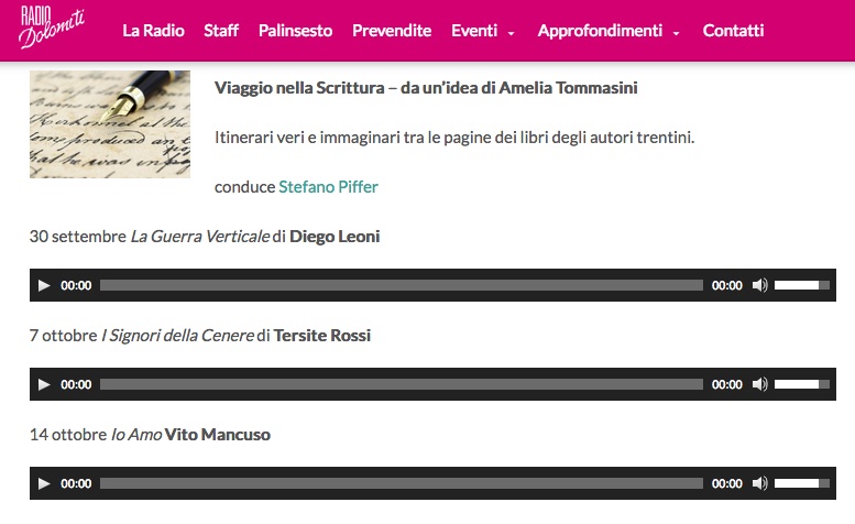 Rassegna stampa I signori della cenere 07 Ottobre 2016 Vai al libro Radio Dolomiti Facebook Twitter Indietro Avanti