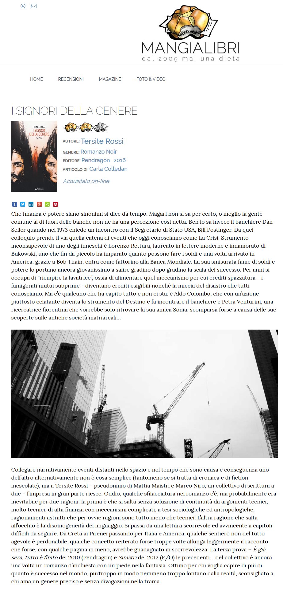 Rassegna stampa I signori della cenere 26 Aprile 2017 Vai al libro www.mangialibri.com Facebook Twitter Indietro Avanti