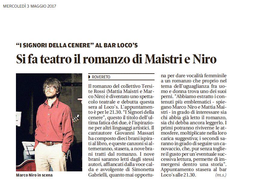 Rassegna stampa I signori della cenere 03 Maggio 2017 Vai al libro L'Adige Facebook Twitter Indietro Avanti