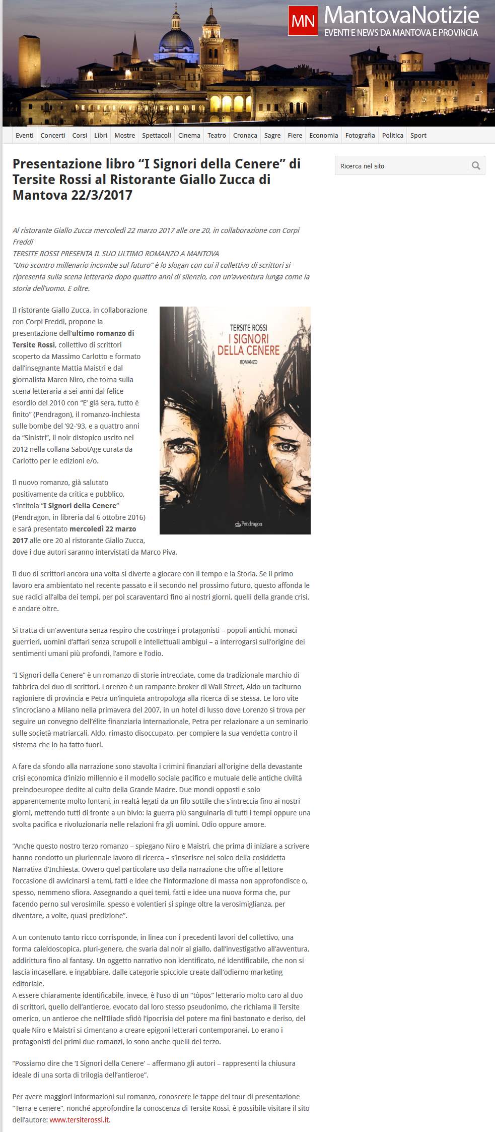 Rassegna stampa I signori della cenere 20 Marzo 2017 Vai al libro www.mantovanotizie.com Facebook Twitter Indietro Avanti