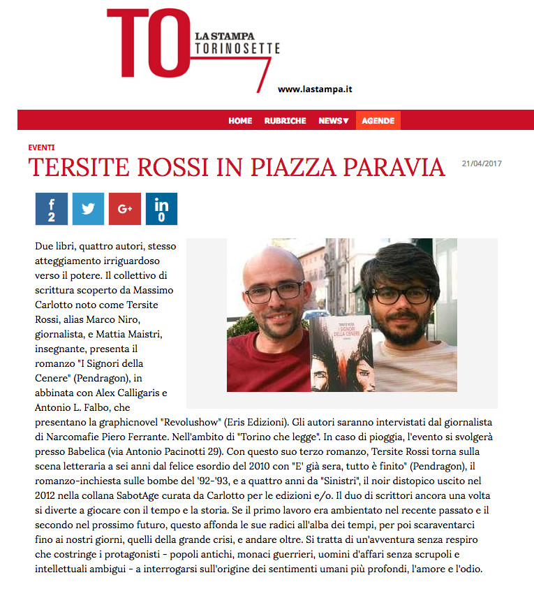 Rassegna stampa I signori della cenere 21 Aprile 2017 Vai al libro Torino Sette Facebook Twitter Indietro Avanti