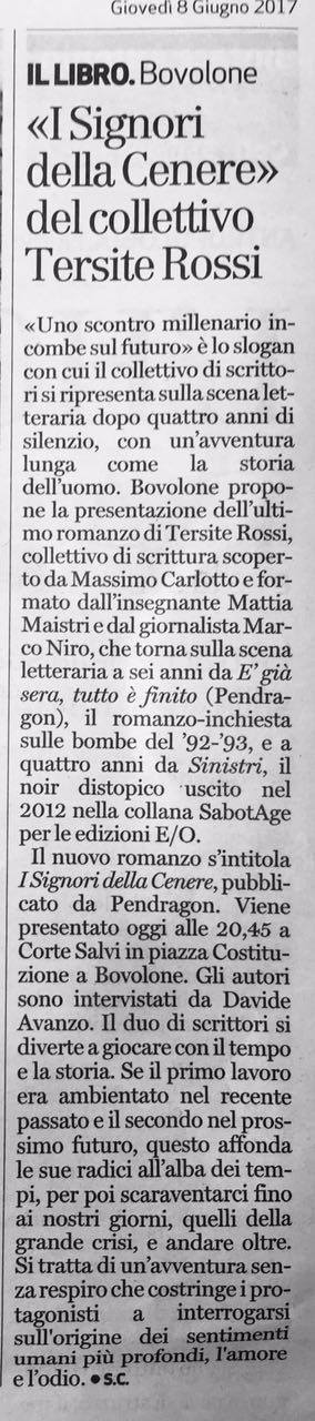 Rassegna stampa I signori della cenere 08 Giugno 2017 Vai al libro L'Arena Facebook Twitter Indietro Avanti