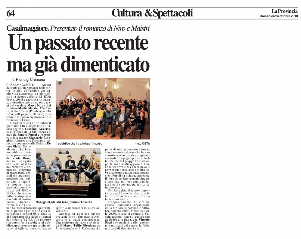 Rassegna stampa È già sera, tutto è finito 24 Ottobre 2010 Vai al libro La Provincia Facebook Twitter Indietro Avanti