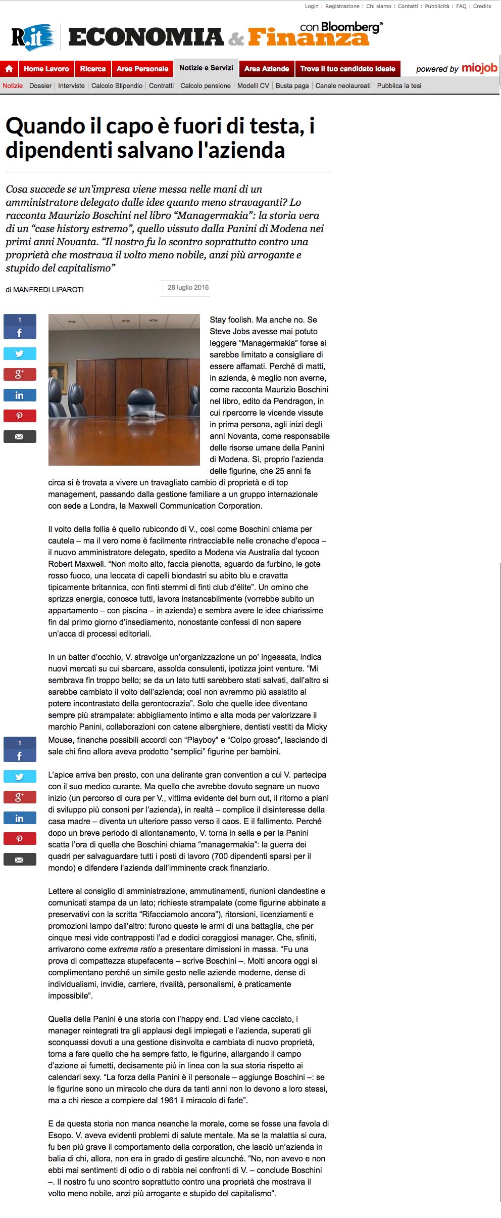 Rassegna stampa Managermakia 28 Luglio 2016 Vai al libro www.repubblica.it Facebook Twitter Indietro Avanti