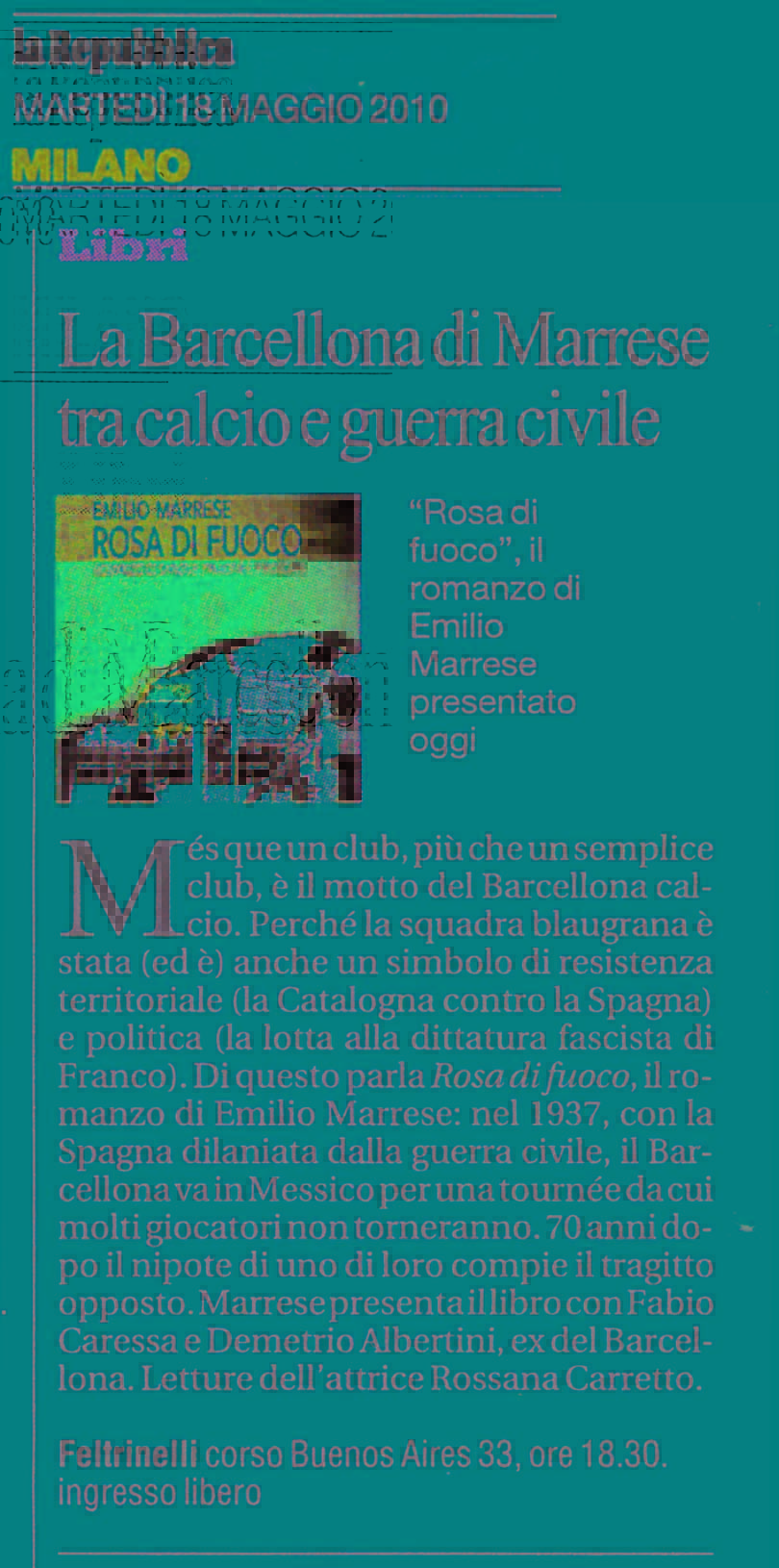 Rassegna stampa Rosa di fuoco 18 Maggio 2010 Vai al libro Repubblica Milano Facebook Twitter Indietro Avanti