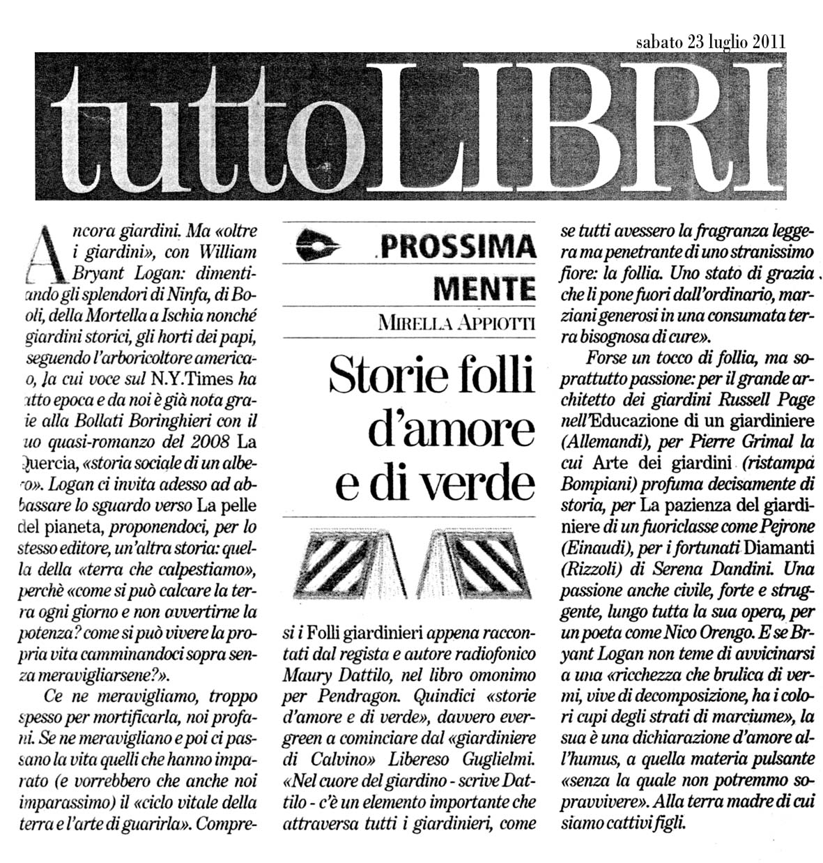 Rassegna stampa Folli giardinieri 23 Luglio 2011 Vai al libro tuttoLIBRI - la Stampa Facebook Twitter Indietro Avanti