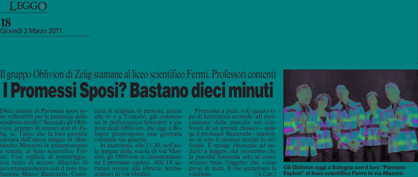 Rassegna stampa I promessi esplosi 03 Marzo 2011 Vai al libro Leggo Bologna Facebook Twitter Indietro Avanti
