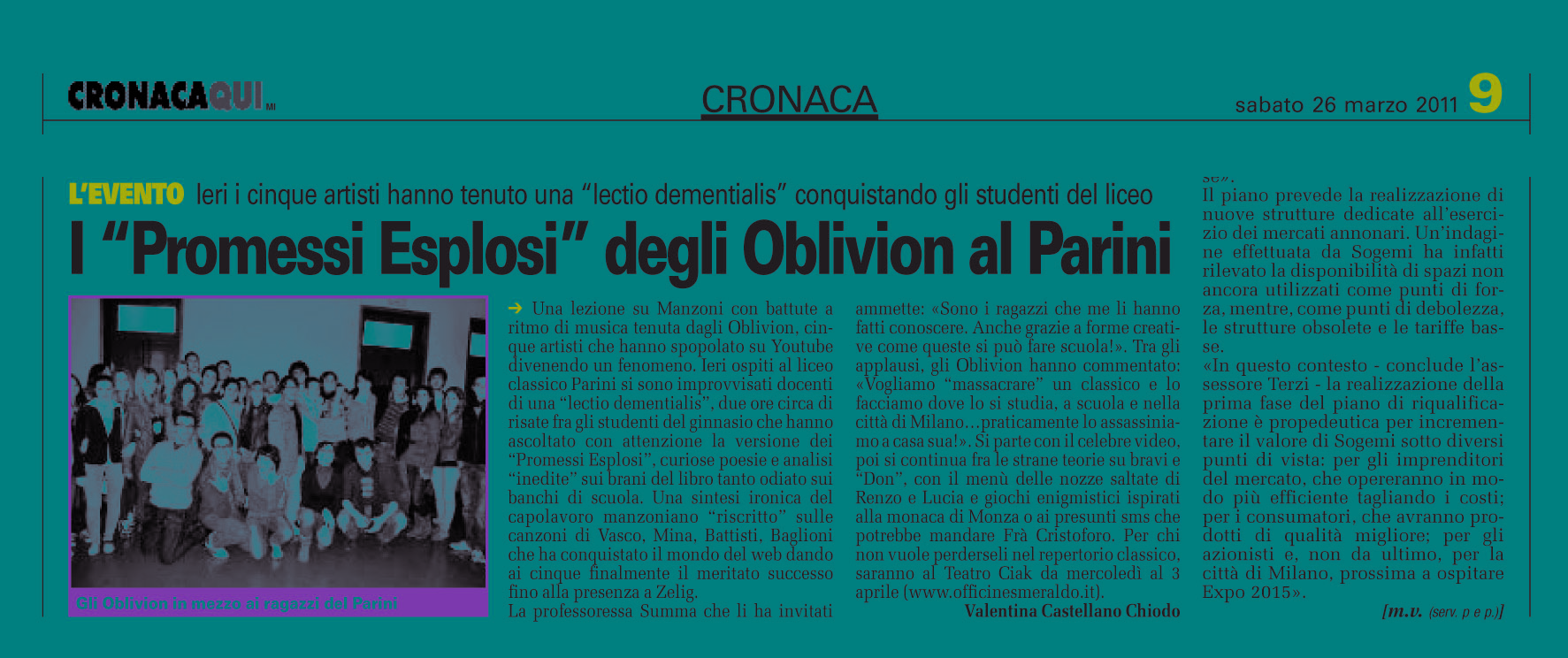 Rassegna stampa I promessi esplosi 26 Marzo 2011 Vai al libro Cronaca qui Facebook Twitter Indietro Avanti