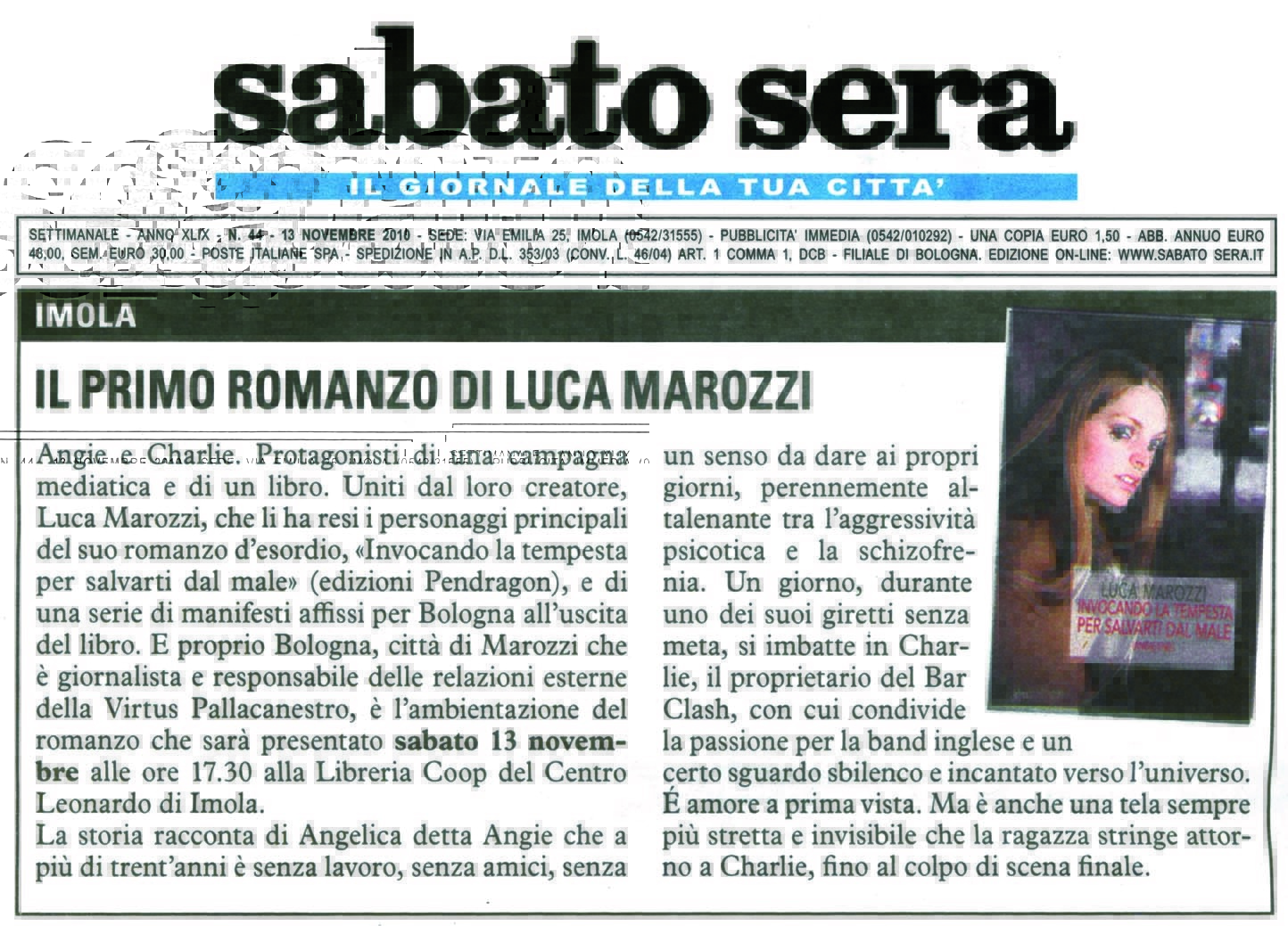 Rassegna stampa Invocando la tempesta per salvarti dal male 13 Novembre 2010 Vai al libro Sabato sera Facebook Twitter Indietro Avanti